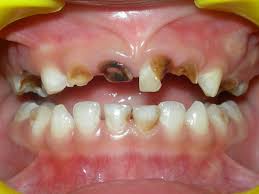Nursing bottle caries or baby cavities or Baby bottle caries is a type of tooth decay which is caused due to chlidern sleeping with bottle. It occurs due to baby cling bottle filled with natural sugar like milk fruit juice or sweetened liquids for long period of time , bacteria's in the mouth creates acidic environment and attack tooth surface leading to multiple tooth decay. First effects on upper teeth.